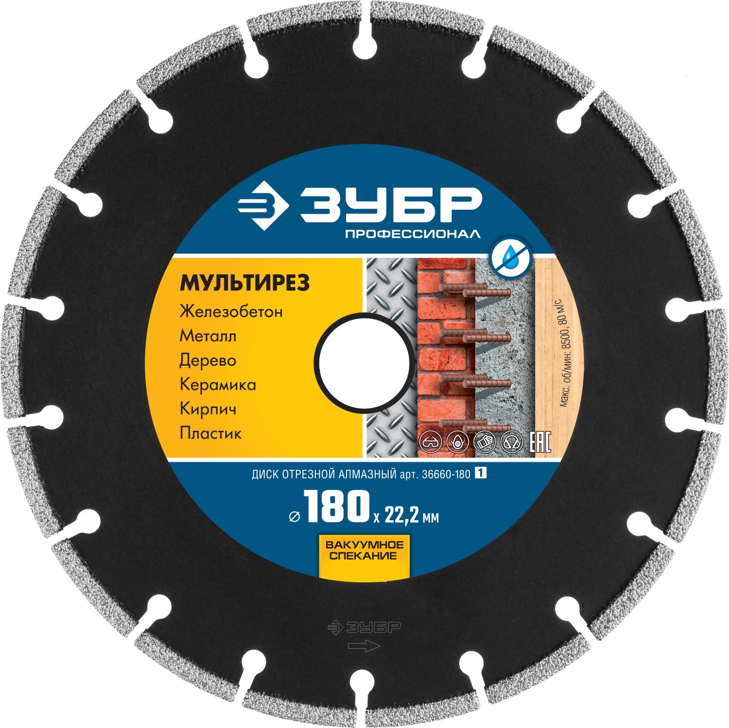 ЗУБР МУЛЬТИРЕЗ 180 мм (22.2 мм, 5х2.6 мм), алмазный диск, Профессионал (36660-180)