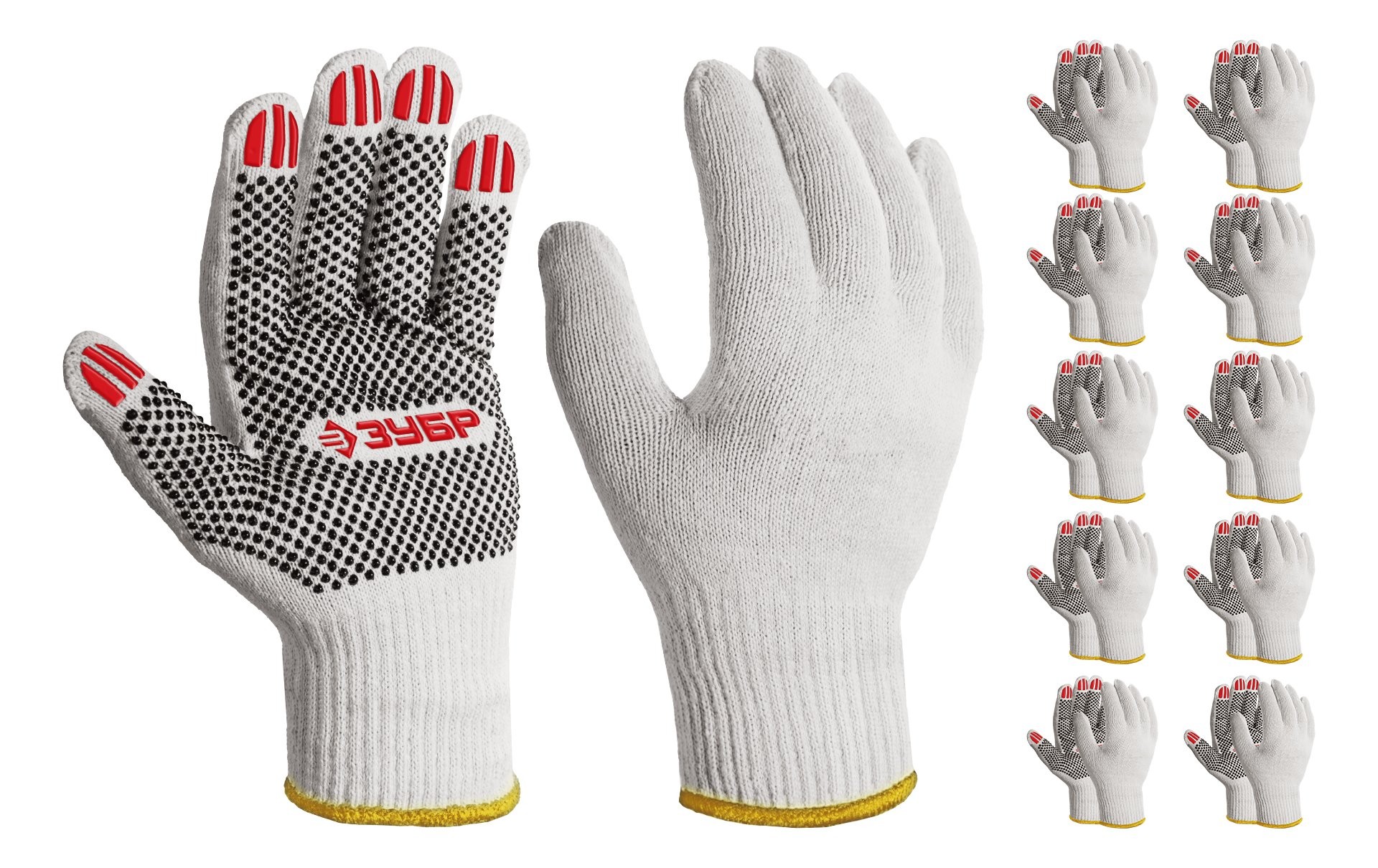 ЗУБР ОПТИМА, L (9), х/б перчатки с ПВХ покрытием (точка), 10 класс, 10 пар (11440-L10)