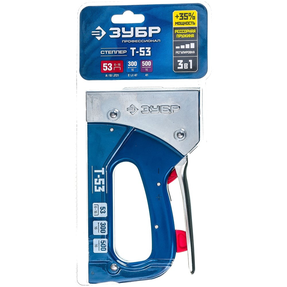 ЗУБР Про-53, тип 53 (A/10/JT21) 23GA (6 - 16 мм)/300/500, стальной рессорный степлер, Профессионал (31523)