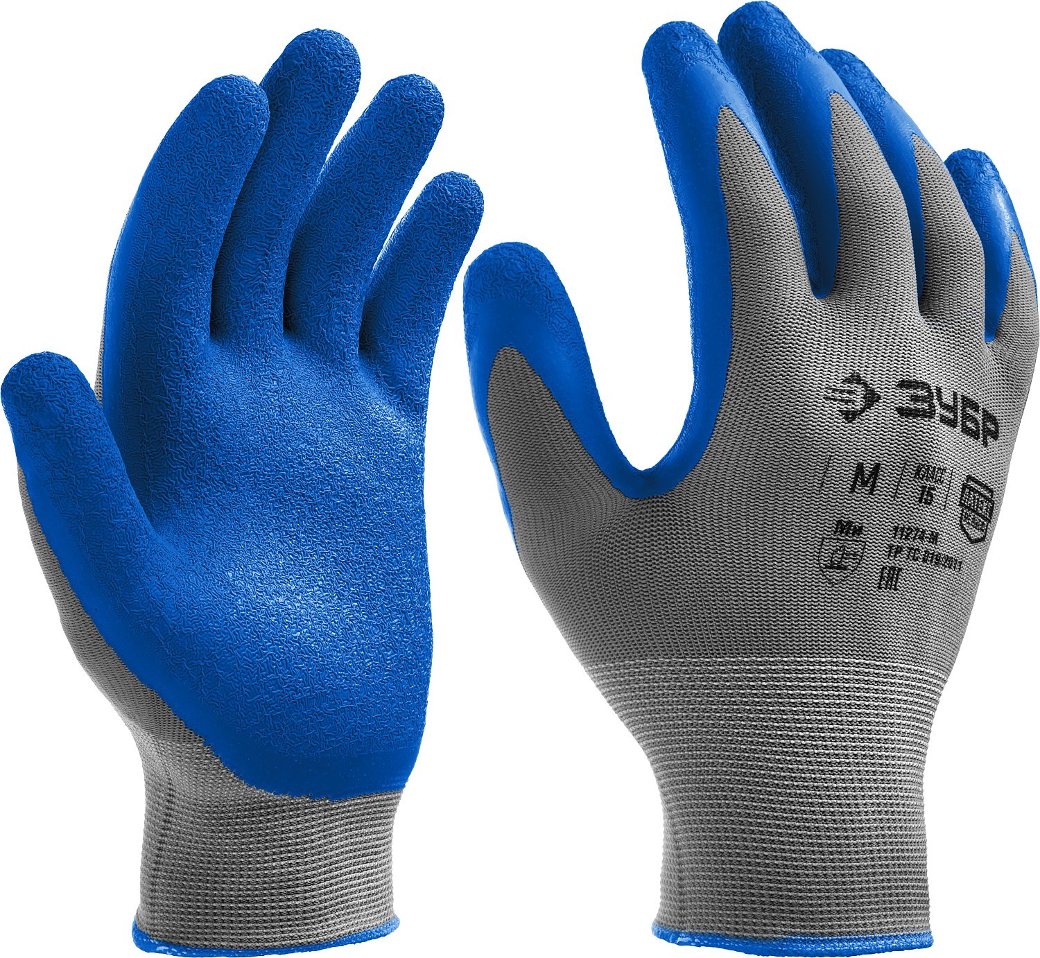 ЗУБР РЕЛЬЕФНЫЕ, M (8), перчатки с тонким рельефным латексным покрытием, противоскользящие, 15 класс, Профессионал (11274-M)
