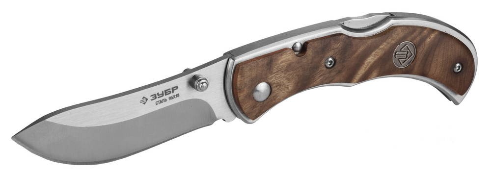 ЗУБР Скиф, 180 мм, лезвие 75 мм, рукоятка с деревянными накладками, складной нож (47712)