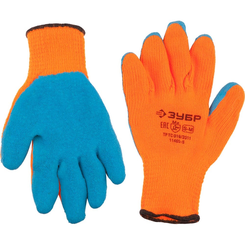 ЗУБР УРАЛ, L-XL, акриловые перчатки сигнального цвета, рельефное латексное покрытие, утеплённые, 10 класс, Профессионал (11465-XL)